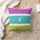 Un oreiller moderne à rayures roses, vertes, bleues et blanches. Les rayures sont larges d'un côté de la coussin, étroites de l'autre. Le coussin coussin peut être personnalisé avec votre initiale, pour apparaître comme un monogramme au centre du côté large rayé.