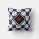 Enfants à thème sportif coussin de base-ball américain personnalisé - Parfait pour les amateurs de baseball dans la décoration de la chambre ou pour les coussins de pépinière de garçons. motif de baseball gras, rouge, blanc et bleu. Initiale monogramme centrée sur le diamant noir et blanc en lettres rouges, de style sportif rétro. Sur le arrière - plan bleu marine, qui peut être changée en n'importe quelle couleur, que ce soit dans la chambre des enfants ou dans une couleur préférée. Le dos est identique. Un cadeau amusant pour les joueurs de baseball, les athlètes et les fans de baseball. Joli cadeau de baby shower personnalisé pour les garçons. Nous avons des matchs de baseball à thème et des coussins de sports à thème coordonnés, ainsi que d'autres coussins de décoration pour enfants dans notre boutique Zazzle.com/angela65*.