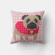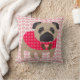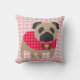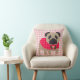 Un amusement et une jolie Saint-Valentin reposent des caractéristiques un blanc avec l'arrière - plan rose de coeurs et un carlin beau portant un manteau de pois rose et d'une cravate de coeur et brune rose de plaid d'arc.