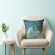 Un coussin avec une photo d'un magnifique loup gris-gris-farci. Dans l'arrière - plan est une forêt sombre avec des arbres. Vibe mystique magique.