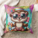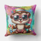Une Grande Fille Colorée Lance L'Oreiller Conçu Avec De Nombreuses Couleurs Et Un Centre Chipmunk En Été Mignon