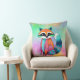 Un raton laveur fantaisiste est illustré de motifs vibrants et colorés qui recouvrent sa fourrure. Sa queue est particulièrement frappante avec des teintes turquoises et roses, complétant le design ludique.