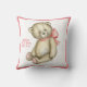 Coussin Bébé Ours rose Ruban Aquarelle Bébé Fille