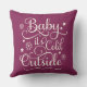 La conception saisonnière de coussin comprend le script "Baby it's Cold Outside" avec des accents d'étoile et de flocon de neige. La couleur rouge cerise de l'arrière - plan peut être customisée en harmonie avec votre décor de vacances.