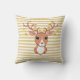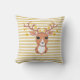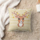 Belle biche de Noël décorée de boules dorées sur un oreiller jeté à fond rayé.