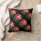 Elegant, colorful vintage floral design,red pink cabbage roses with green leaves on black background.