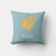 Coussin carré bleu doux avec forme jaune organique et typographie chaleureuse