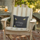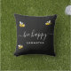 Décoré d'abeilles souriantes et joyeuses. Un arrière - plan noir chic. Script en lettres blanches avec swashes et texte : Bee Happy. Personnalisez et ajoutez votre nom, des lettres de couleur dorée. Parfait pour la vie en plein air estivale, dans votre jardin ou au bord de la piscine.
