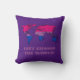 Lancer personnalisable oreiller avec la carte du monde dans la couleur du drapeau de la fierté de bisexualité, un design sur un arrière - plan rose; le texte "Changeons le monde" est un texte modèle et peut être changé.
