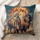 Ce graphique saisissant capture un moment symbolique et puissant, avec un chef amérindien debout fièrement à côté d'un bison majestueux sous la lueur d'une lune radiante.