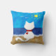 Les caractéristiques de conception ce de chat blanches mignonnes de coussin un chat blanc se reposant sur une plage sablonneuse observant les ressacs et des oiseaux volant pendant l'été exposent au soleil ! ! Une grande n'importe quand idée de cadeau pour votre amoureux des chats préféré ! !