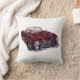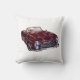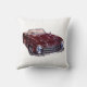 Peinture voiture vintage bordeaux sur coussin blanc créé par l'artiste. Illustration dessinée à la main voiture rouge rétro pour décoration de maison.