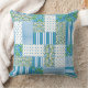 Coussin Bleu, Blanc, Vert Matin Glory Faux Patchwork