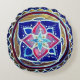 Bleu, or, rose, mandala blanc sur un coussin rond.Pour tous les amateurs de mandala, yoga, méditation et beauté.Décor maison original et magnifique.