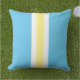 Ce coussin de patio extérieur présente des rayures de cabane dans un bleu aqua jaune et blanc. Un look net et net qui plaira à lui, à elle et aux enfants.