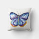 Coussin bleu de jet d'aquarelle de papillon