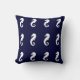 partie du décor océanique SEAHORSE WHITE on NAVY BLUE COUSSIN d'un côté et NAVY and white Art Deco waves retour.