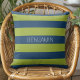 Coussin Bleu de marine et Graines de rugby vert Nom person