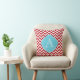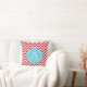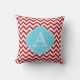 Coussin bleu de monogramme de rayures rouges et blanches de Chevron.