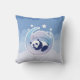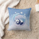 Coussin mignon avec un panda dormant sur la lune, les étoiles de blanc et l'arrière - plan nuageux bleu.