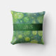 Ajoutez une touche d'élégance et de fantaisie à votre espace avec ce coussin d'accent unique. A l'avant, un charmant motif d'encre d'aquarelle de cercles aux tons verts et bleus rencontre une bande verte en velours avec votre nom de famille ou votre monogramme dans une police vert clair. Retournez-le pour trouver le même luxueux arrière - plan de velours vert avec des rayures de l'aquarelle design. Il s'agit de deux styles en un, un délicieux mélange de sophistication et d'art, le tout dans un seul jet d'oreiller. Hobinishop