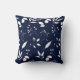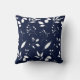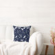 Des silhouettes de feuillage en blanc s'assoient sur un arrière - plan bleu marine pour cet oreiller de lancer.