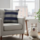 Beau coussin bleu marine et argent pour votre salon ou chambre. Coussin à rayures classique élégant et élégant pour une maison décorée avec goût. Fait un beau cadeau de ménage.