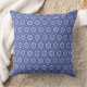 This is a square throw pillow featuring a repetitive, intricate geometric pattern in shades of blue and white/light cream. The design suggests a mandala-like or tile mosaic motif, giving it a classic yet vibrant look that could complement many decor styles.