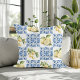 Elegant watercolor french country blue tile and lemon pattern throw pillow to decorate your home with grace.