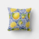 Coussin Blue White Lemon Tile Pattern Mediterranean Citrus