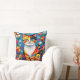 A cute cat themed throw pillow. A cute colorful boho cat sitting in flowers and surrounded by butterflies. The art is in an impasto oil paper quilling style.