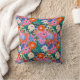 Bold retro floral pattern throw pillow for colorful bedroom decor in a joyful dopamine decor style, featuring a reversible design with a bright vintage inspired floral print on the front and a warm orange coordinate on the back pulled directly from the orange tones in the artwork for a perfectly matched finish, with cool blue accents that keep the palette feeling fresh. This retro botanical look makes a statement in an eclectic bedroom or living room.