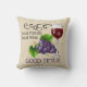 Cet oreiller fantaisiste est idéal pour les amateurs de vin. Le design est composé d'un verre de vin et de raisin, avec le texte "Good Friends Good Wine GOOD TIMES !" La couleur Arrière - plan peut être modifiée et vous pouvez également personnaliser le texte.