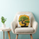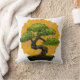 Une belle illustration d'un bonsaï assis dans un pot noir contre un arrière - plan circulaire jaune vif.