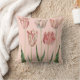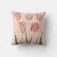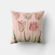 Ce coussin comporte un dessin botanique vintage des tulipes, sur un pâle - arrière - plan rose.