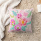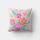 Cette coussin est dotée d'un beau bouquet féminin et coloré de fleurs assorties dans les tons rose, orange, jaune et blanc, complété par des feuilles verts et aqua sur un arrière - plan rose doux.