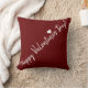 Bourgogne Rouge Saint Valentin's day Heart Script Jeter l'oreiller. L'arrière a des coeurs blancs sur un arrière - plan rouge bordeaux.