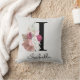 Oreiller décoratif brodé rose boho monogramme, cadeau idéal pour Noël ou un anniversaire pour une fille, une mère, une tante ou une sœur. Personnalisé avec le monogramme de la lettre I et un nom. Autres lettres disponibles dans ma boutique.