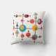 Cet oreiller de lancer a un design moderne du milieu du siècle de bulles connectées sur des lignes noires.