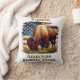 American Buffalo Bison dans le texte en bronze. Le buffle se dresse fièrement devant le drapeau américain, symbole de force et de patriotisme.