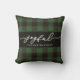 Rustic Green Plaid Vacances Imprimer avec Joyeux Script et Personnalisé Nom de famille Buffalo Plaid Oreiller de Noël.