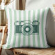 Coussin Camera on Sea Green Stripes, Accent Pillow,