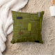 Cet oreiller de lancer a un design moderne du milieu du siècle de rectangles en vert, gris, marron et noir.