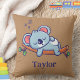 Ajoutez le nom d'un enfant à cet adorable oreiller à jetons avec un joli dessin de koala pour bébé endormi, allongé sur une branche d'arbre feuillu. L'inverse Arrière - plan et coussin est d'une couleur chaude et neutre. Whimsical et élégant, ce coussin personnalisé fait un cadeau de baby shower sucré et un grand ajout à une pépinière. S'accorde bien avec les styles de décoration traditionnels et contemporains. Choix de couleurs disponibles.