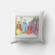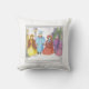 Les Caroleurs de Noël jettent l'oreiller. Ces chanteuses magnifiques dans la neige, avec des arbres verts sapins au loin - sont habillés de vieux vêtements - hommes avec chapeaux haut - femmes avec bonnets. Couleurs de Bleu, Magenta, Or, Jaune, Rose et Rouge. Dans l'arrière - plan est un vieux poteau de lampe noire éclairé