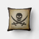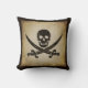 Perfectionnez pour le bateau ou le club de yacht, caractéristiques de ce coussin le symbole classique de drapeau de pirate de jolly roger connu sous le nom de drapeau de "Rackham", un crâne avec les épées croisées. Dans le brun éraillé sur un arrière - plan bronzage de texturisé-regard avec la frontière brune.