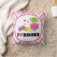 Ce coussin adorable de livre a rose et l'arrière - plan blanc de zigzag de chevron avec le rat de bibliothèque et moi mignons aiment le slogan de livres.