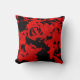 Un coussin rouge et noir avec les roses noirs audacieux.