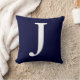 Coussin Carreau décoré d'un monogramme blanc du bleu