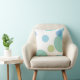 Ce carreau vert-bleu de cercles comporte un arrière - plan blanc avec des nuances de motif vert et bleu de cercle. Perfectionnez pour n'importe quelle pièce dans votre maison ou bureau. Complètement personnalisable. Fait également un cadeau merveilleux de pendaison de crémaillère ! Choisissez du polyester ou du coton de la catégorie A de 100%. Choisissez la taille 16" x16" ou 20" x20".